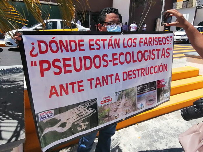 Dónde están los fariseos pseudoecologistas ante tanta destrucción, se preguntaron los manifestantes ante quienes han cuestionado al presidente por la construcción del Tren Maya.