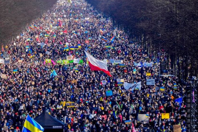 Más de 100 mil personas se manifiestan en Berlín contra la invasión rusa en Ucrania